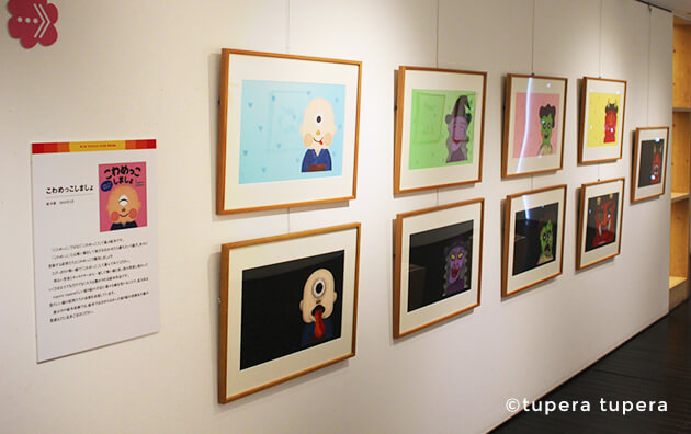 絵本やイラストレーション制作、工作番組のアートディレクションの担当など幅広く活躍し、第1回「やなせたかし文化賞」大賞を受賞したtupera tuperaと人形劇のプロ活動を行い、コンクールでも様々な賞を受賞している人形劇団ココン。本展では、絵本原画やラフ、立体作品、人形の展示が行われました。イベントでは、tupera tuperaによる絵本の読み聞かせライブやサイン会、人形劇団ココンによる人形劇上演が行われました。