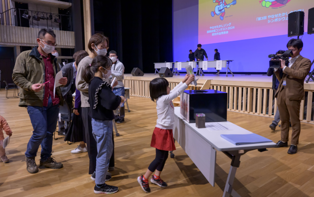 やなせたかし氏は漫画や絵本などの制作だけでなく、子どもから大人まで幅広い世代に歌い継がれる楽曲を数多く創作しました。この日は、そうした名曲の中からお気に入りの曲を選び、好きな仮装で歌ったり、演奏したりする動画コンテストも開催されました。最終選考に残った8作品の中から、来場者の人気投票を踏まえ、9名の審査員により1~3等賞、特別賞のやなせスタジオ賞、やなせたかし文化賞選定委員賞が選ばれ、それぞれに賞状と副賞が贈られました。