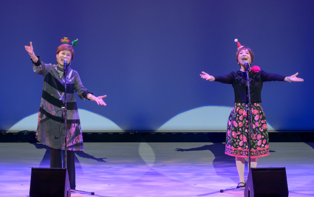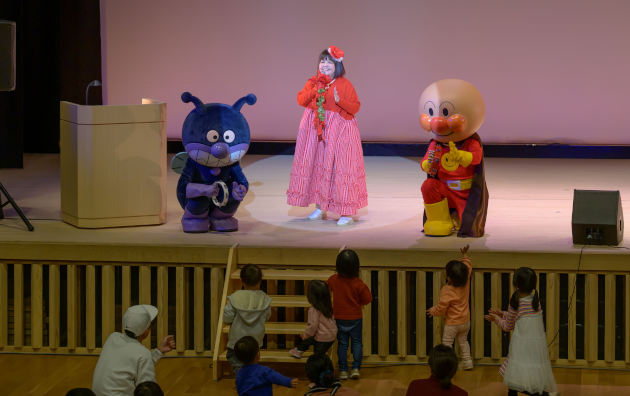 イベントの最後には、やなせたかしソングでおなじみの童謡歌手、大和田りつこさんと岡崎裕美さん、「アンパンマンのマーチ」で有名な「ドリーミング」によるスペシャルコンサートも開催され、ステージと客席が一体となって、やなせ氏のクリスマスソングや「希望のハンカチ」「勇気りんりん」などのヒット曲を次々と歌い上げました。